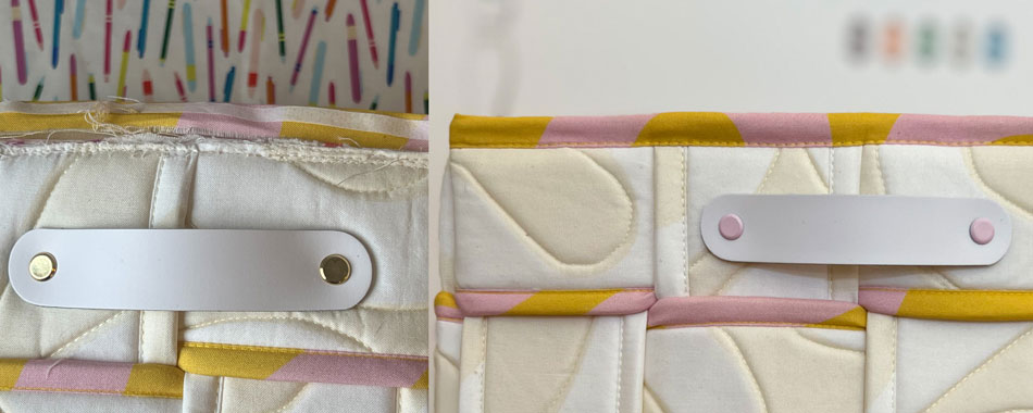 Hier hatte ich zuerst goldenen Buchschrauben verwendet (weil halt im Bestand) und diese dann in Rosa angesprüht und das passt sooo viel besser!