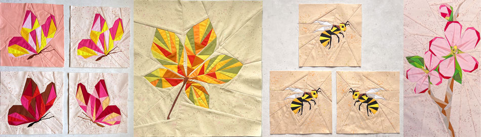 Gut, dann hab ich ja schon mal 2 Dinge auf die ich beim nächsten Mal achten werde 😉 Ich werde generell noch viel üben, bevor ich einen wirklich WICHTIGEN Quilt wie z.B. den Fourseasonssampler, an dem ich ja am Ende über anderthalb Jahre gearbeitet haben werde, damit quilte. Mit dem hänge ich auch ein wenig hinterher. Bisher habe ich nur Schmetterlinge, Ahornblatt, Bienen und Apfelblüte mitgenäht.