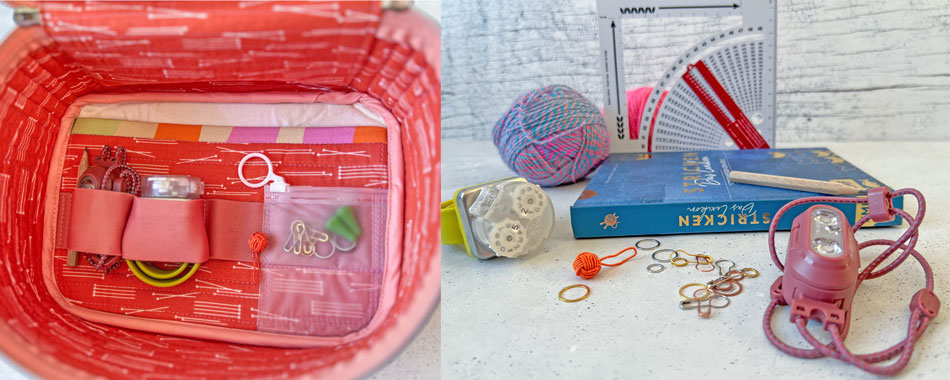 Obwohl dieses helle Rot eher nicht meine Farbe ist und es hier ja auch keinerlei Farbkonzept gab, mag ich das Gesamtergebnis. Ich hätte auf jeden Fall andere Farben gewählt und andere Stoffe kombiniert, wenn ich dafür eingekauft hätte. Aber irgendwie hat es auch etwas Besonderes, wenn eine Projekttasche entsteht die soooo sehr das Thema STRICKEN aufgreift, obwohl dafür nur Zubehör aus dem Bestand genommen wurde. Das hat es mir beim Nähstart meiner Strickpenny echt schwer gemacht, aber umso toller finde ich sie nun.