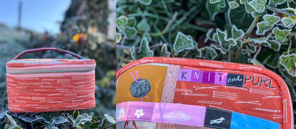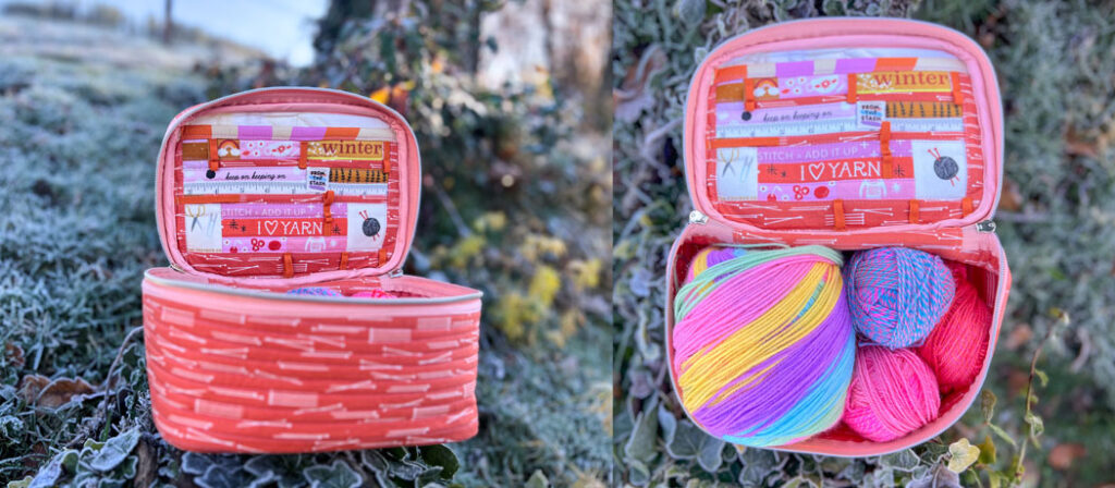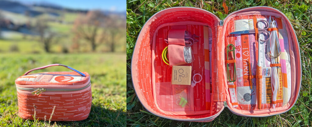 Der Stricknadelstoff von Moda liegt schon seit Jahren daheim. Ich wollte ihn eigentlich mal für eine Art Stricknadelmappe verwenden, die all meine Stricknadeln sortiert beherbergt. Dafür gibt es aber inzwischen eine neue Idee: Die „A Place for everything“ von ByAnnie zu der die Nähgang einen Videokurs gedreht hat, den sie Anfang des Jahres 2026 veröffentlichen werden. YES!! Die Schnitte von Annie Unrein sind sooo toll, aber wirklich kein Spaß was die Anleitungen angeht. Die möchte ich aber in ganz anderen Farben nähen und somit war dieser Stoff übrig und ist erst nur zwischen die Motivstoffe gewandert, hat sich dann aber nach und nach als Hauptstoff eingeschlichen, weil die verfügbare Menge einfach perfekt gepasst hat.