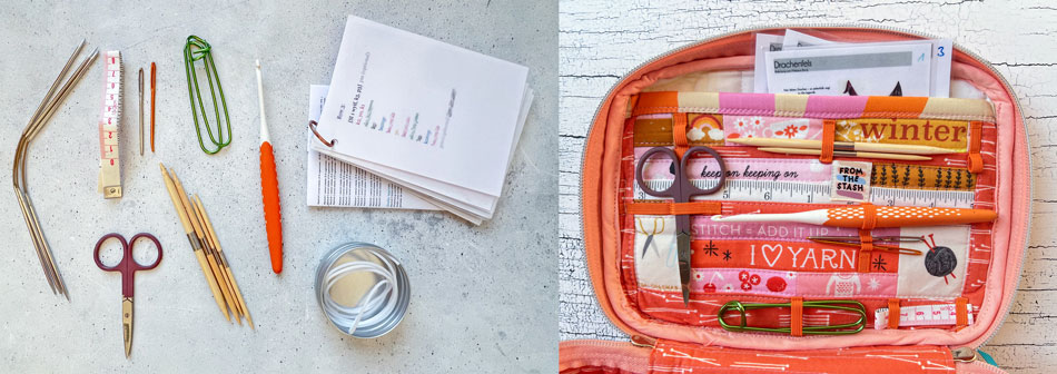 Ich teste mich gerade durch verschiedene Anleitungen, verschiedene Sockengrößen und verschiedene Wollstärken und was nicht passt wird einfach neu / von vorn gestrickt (statt gefrustet in die Ecke geworfen). In diesem Jahr war ich nur von einer Sache genervt: Nie war mein Zubehör da wo ich es brauchte. Wenn ich mir sicher war, dass es reicht nur den Socken mit dranhängender Wolle und die Nadeln mit in ein anderes Zimmer zu nehmen, brauchte ich garantiert (kaum dass der Hund auf mir lag)doch die Schere, oder das Knäuel mit der Zweitfarbe oder eine Häkelnadel um eine Masche zu retten