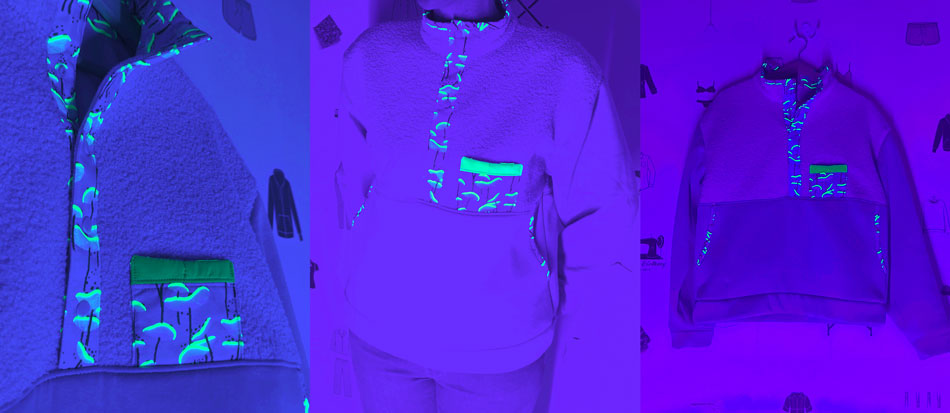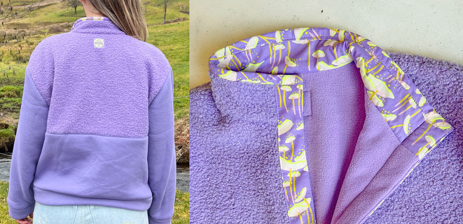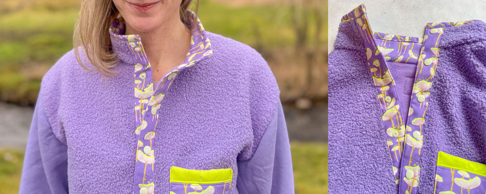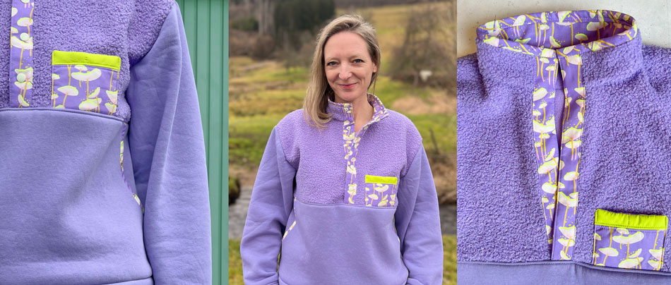 Der Stoff mit den zwei Kuschelseiten ist ja der Hammer. Ich finde, dass dir die Farbe sehr sehr gut steht und die leuchtenden Pilze finde ich – wenngleich sie möglicherweise keine echte Funktion haben – trotzdem irgendwie toll. LG Carola