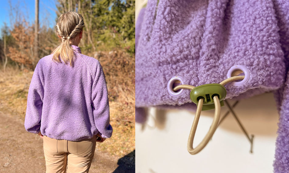 Die Innenansicht mag ich nun SEHR. Gewöhnungsbedürftig bleibt der sehr kastige Schnitt. Ich habe kein Tragefoto davon, aber mir gefällt die Jacke an mir nur, wenn sie auch wirklich durch die Gummibänder gerafft wird. Und trotzdem finde ich sie ZU oversizig. Ich habe anhand der Maßtabelle eine M gewählt, aber ich denke eine S hätte auch locker gereicht für mich. Auch die Raglanärmel sitzen nicht schön an mir. Ich glaube die sind generell nicht so vorteilhaft für mich, aber hier auf den Fotos finde ich sie richtig unpassend.