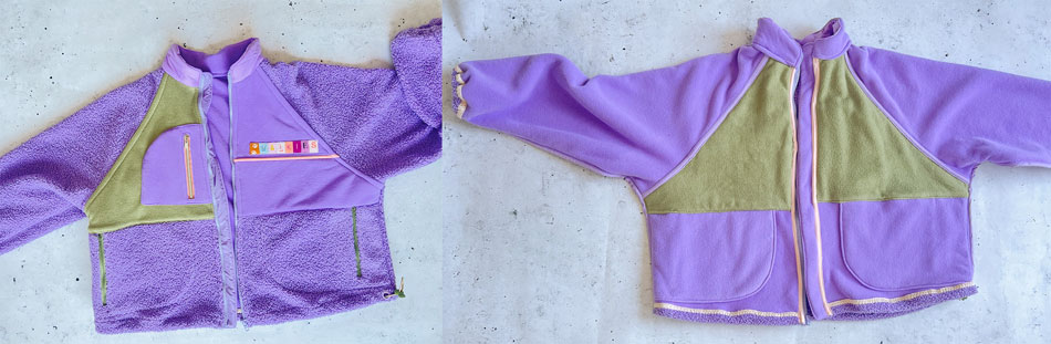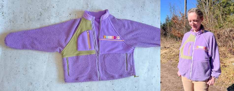 Heute zeige ich eine Fleecejacke deren Schnitt ich hauptsächlich wieder wegen der tollen Kombinationsmöglichkeiten für Farben und Stoffe gekauft habe.
