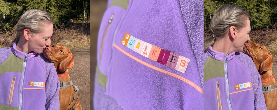 Das Wort „Walkies“ – Verniedlichung für Hundespaziergänge – begegnete mir viel in der Hundebubble auf Instagram und steht daher jetzt auf meiner Jacke die ich wohl hauptsächlich bei eben diesen Hundespaziergängen trage. Auch hier auf dem Ausflug wo die Tragefotos enstanden sind.
