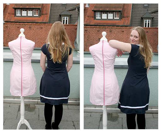 Ziemlich cool, deine Schneiderpuppe. Da kannst du jetzt nähen, ohne zwischendurch immer alles aus und anziehen zu müssen … 😉
