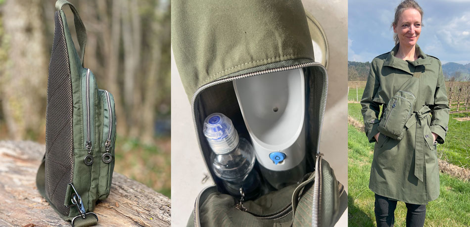 Eine Handtasche (ganz links, Kanoko Tote Bag), Ein kleiner Rucksack für kürzere Spaziergänge (Making Backpack), ein Wanderrucksack (Veiiko) und eine Bauchtasche (Tasche voll Glück). Alle vier Taschen haben übrigens eine Kühlfunktion in einem der Fächer 🙂