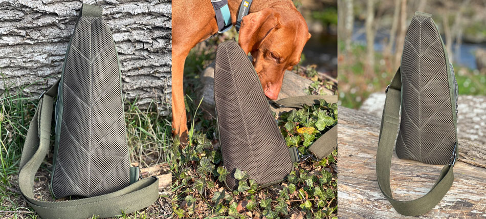 Aber was ist größer als eine Hip Bag und trotzdem kleiner als ein Rucksack? Eine Sling Bag! Ich habe ein wenig recherchiert und fand die Idee dann großartig, weil Sling Bags eben auch vorne getragen werden können und ich somit ständig schnellen Zugriff auf alles hätte: ein schneller Schnappschuss mit dem Handy, das rechtzeitige Belohnen mit Leckerlis, die Hundepfeife griffbereit für den spontanen Rückfruf… Ich liebe es echt, wenn das alles schnell geht und ich nicht für jede Kleinigkeit den Rucksack mindestens halb absetzen und nach vorne holen muss. Die Sling Bag Schnittmuster-Recherche war aber langwierig. Die meisten waren fast so groß wie ein Rucksack und wurden daher wohl auch von den meisten auf dem Rücken getragen. Aber dann könnte ich auch gleich beim Rucksack bleiben. Die Vylba von Hansedelli finde ich toll und werde ich wohl auch noch nähen. Aber die Wasserflasche für den Hund passt da definitiv nicht rein. Irgendwann habe ich dann den Heartlands Backpack von Sew Sweetness entdeckt. Von dieser Sling Bag habe ich (auch bei Instagram) generell nicht viele Bilder gefunden, aber die Tragebilder die es gab, waren welche wo die Tasche vorne getragen wird. Was es für mich noch komischer macht, dass sie Heartlands Backpack heißt…