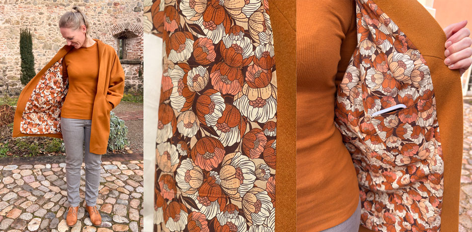 Ich bin sehr begeistert. Der andere Futterstoff für den Mantel macht sich so gut.